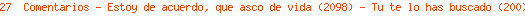| M###o y su ADV Posted: 02 Oct 2014 08:02 AM PDT Hoy, hace unos momentos, me ha rechazado la chica de la cual estoy enamorado desde hace 2 años, por tener el mismo nombre y apellido que del que fue amante de su madre y por el que abandonó a su familia. Terminé dándole la razón y pidiéndole disculpas. ADV   |
